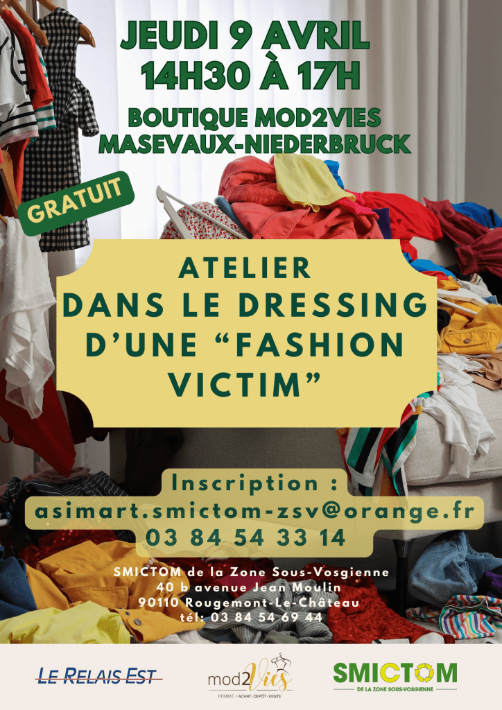 L’atelier aura lieu dans la boutique de vêtements et accessoires de seconde main « MOD2VIES » située au centre-ville de Masevaux-Niederbruck et est entièrement gratuit.